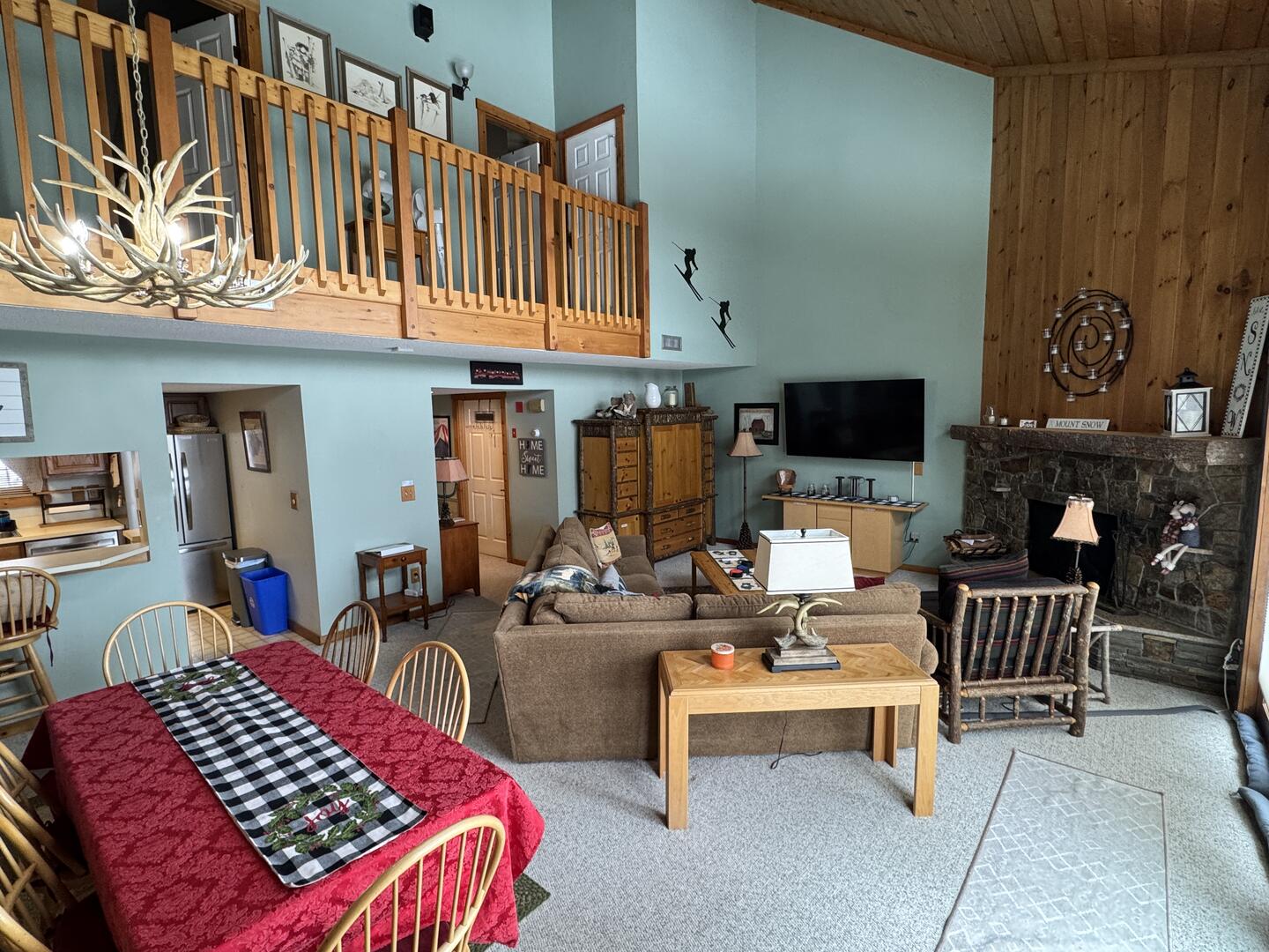 $22,500: This spacious two level two-bedroom , three-bathroom townhome is located in the Greenspring community, only 1/4 mile from Mount Snow. It has a full kitchen with spacious dining and living area with vaulted ceilings. Cozy up by the fireplace surrounded by beautiful stone work. Full shuttle service. Enjoy the Greenspring clubhouse with a spacious fitness room, indoor pool and game room. This very comfortable house has beautiful views of the mountain, and something for every season!